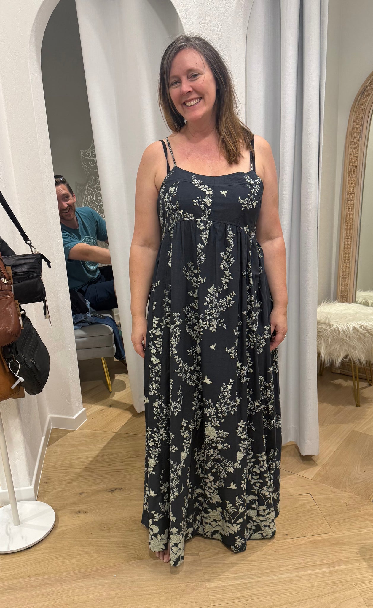 - Spaghetti straps with adjustable tie at the back