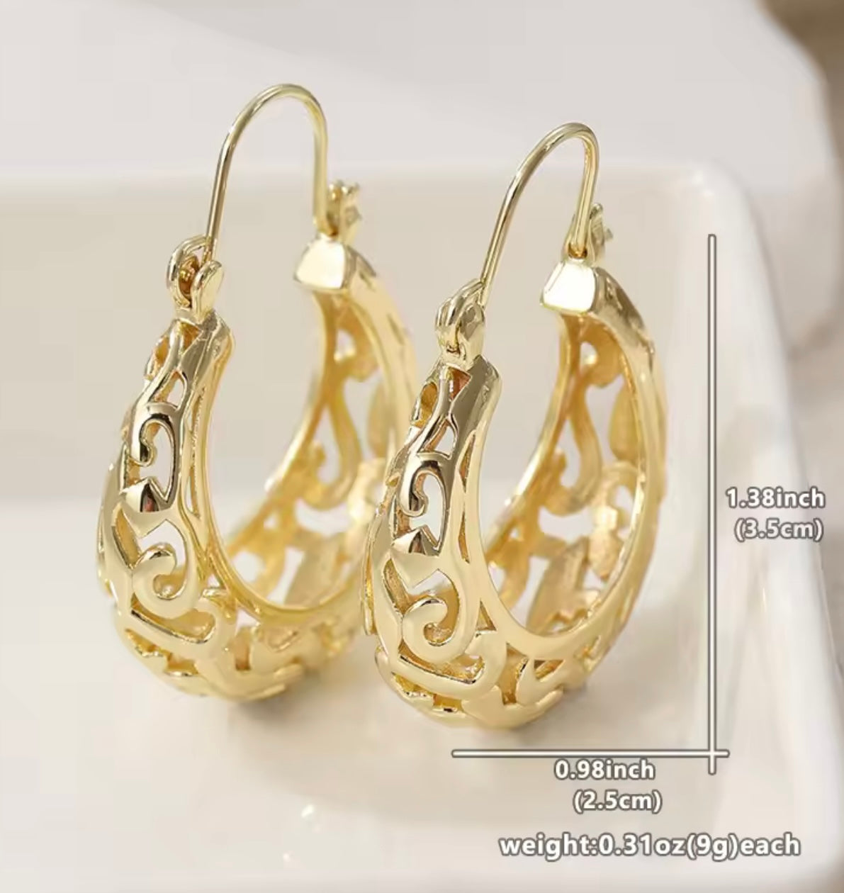 Beautiful light weight gold hoop earrings