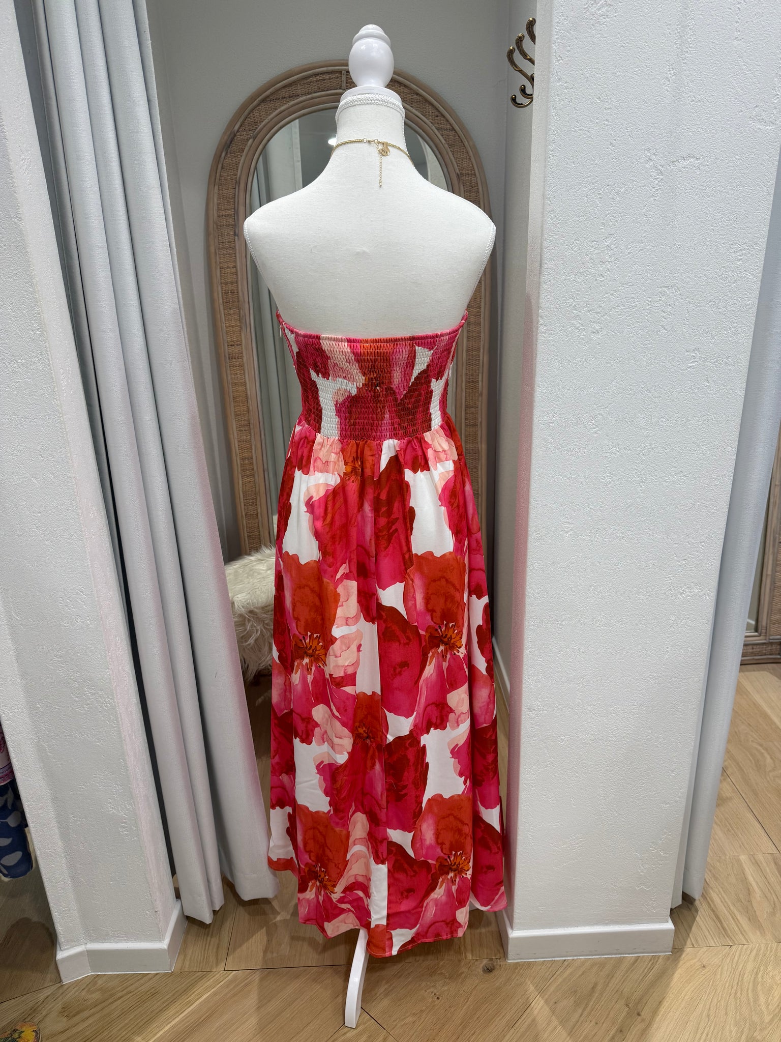 The Aria maxi Dress in a stunning Floral design is the perfect events dress. The Dress features a fitted bodice making this a flattering silhouette that is comfortable for your next event.