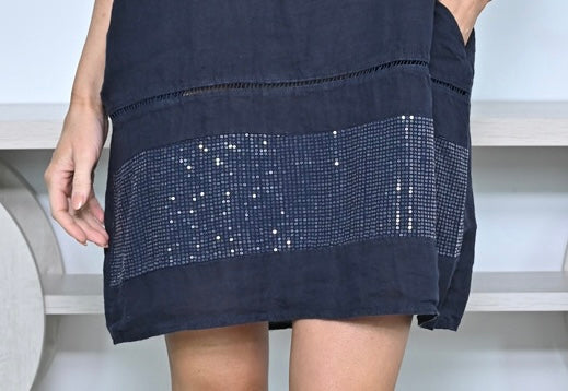 ANNALISA LINEN SEQUIN DRESS - NAVY