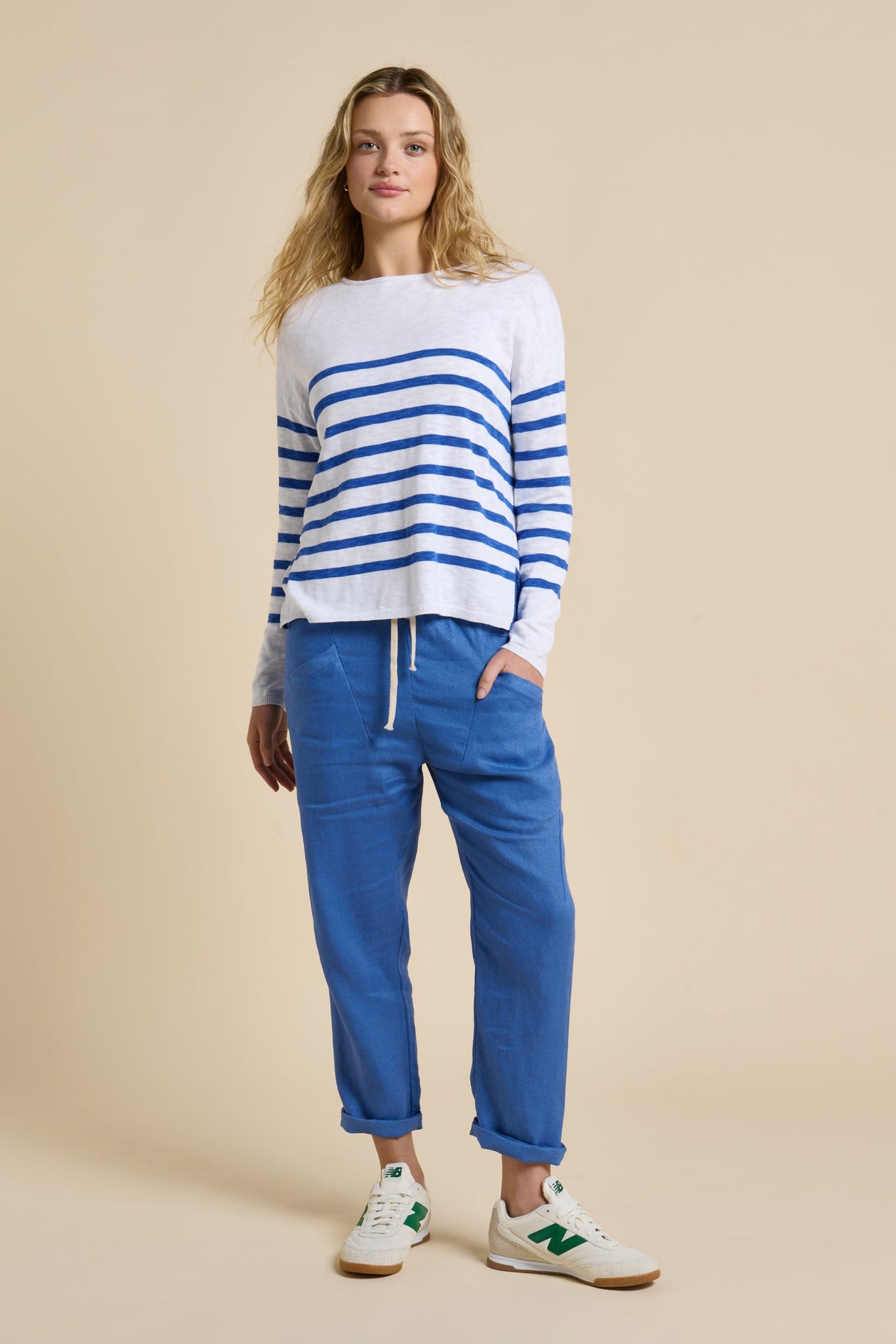 A gorgeous new lighter weight Linen, with new detailing a relaxed fit and contrast drawstring.