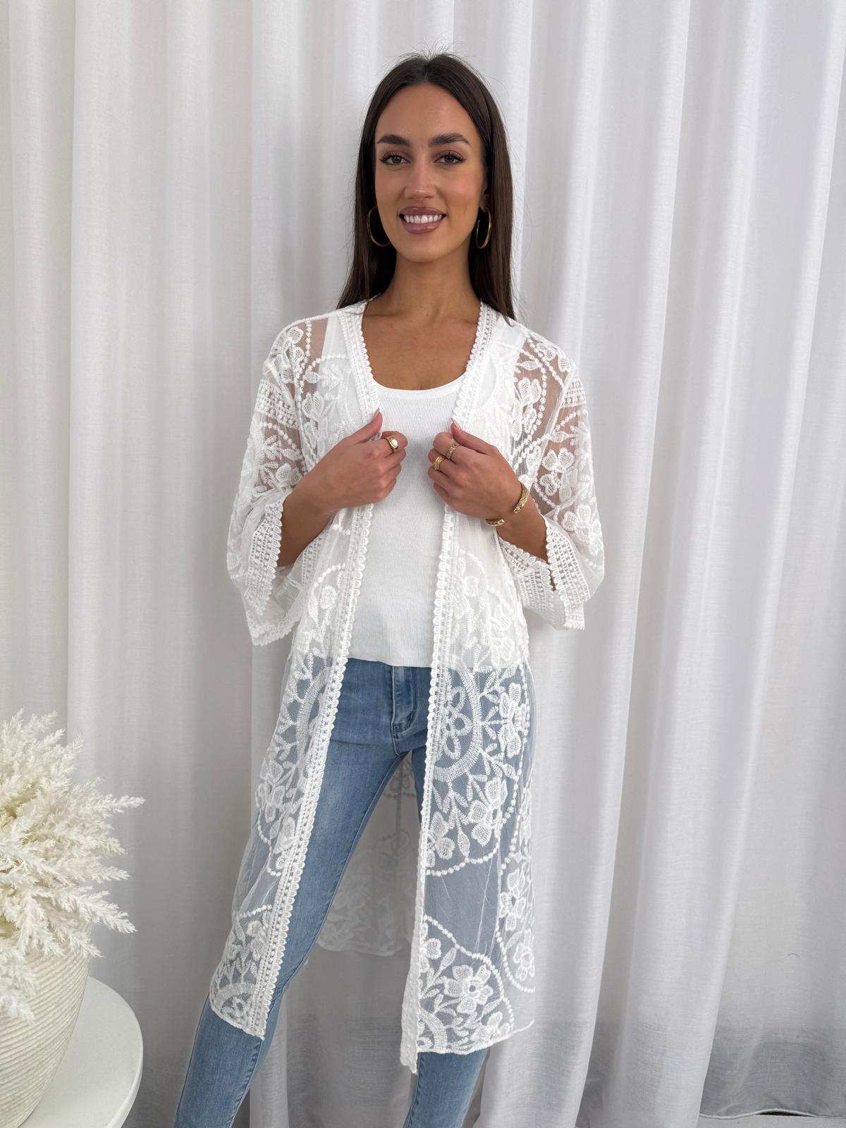 Boho Heaven! We are obsessed with our new wish lace white kimono! Throw on over the top of your favourite dress to spice up your date night outfit or over your favourite jeans and top. This stunning cape is a lightweight sheer material with gorgeous lace detailing throughout. No matter what occasion, we are sure this is the must have for your wardrobe!
