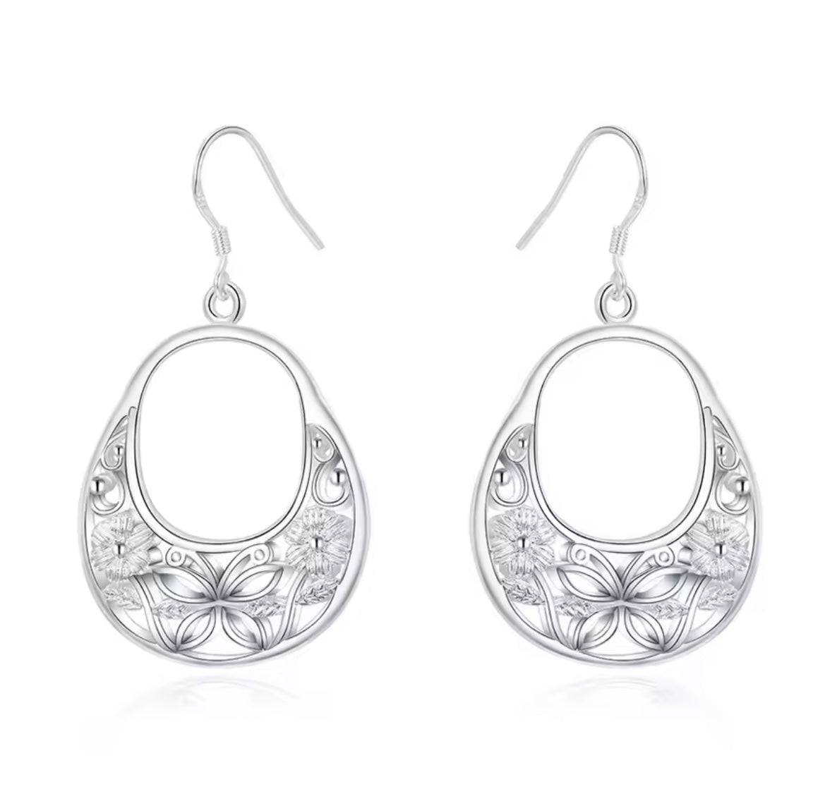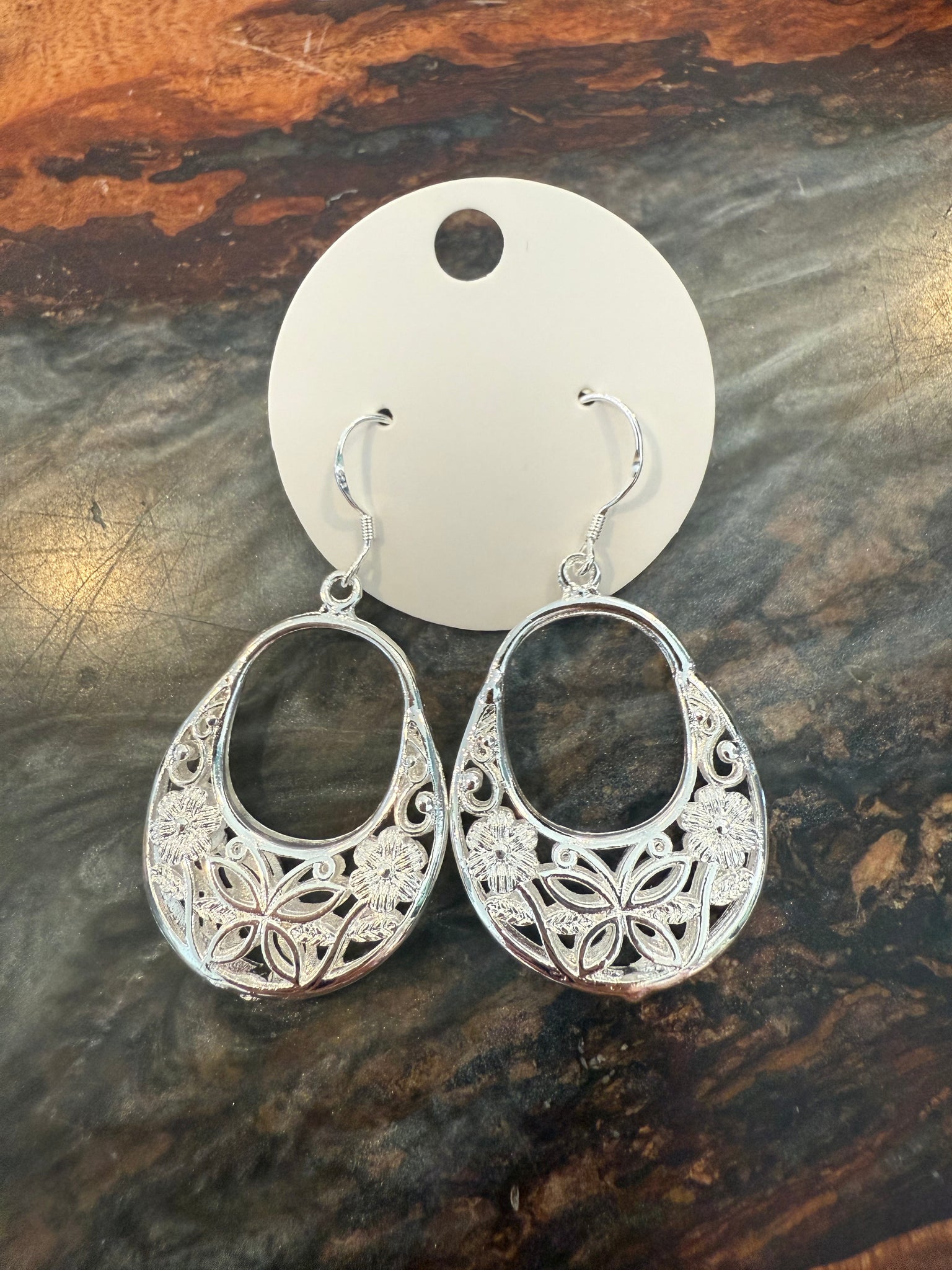 SILVER CARVED BUTTERFLY & FLOWER EARRINGS
