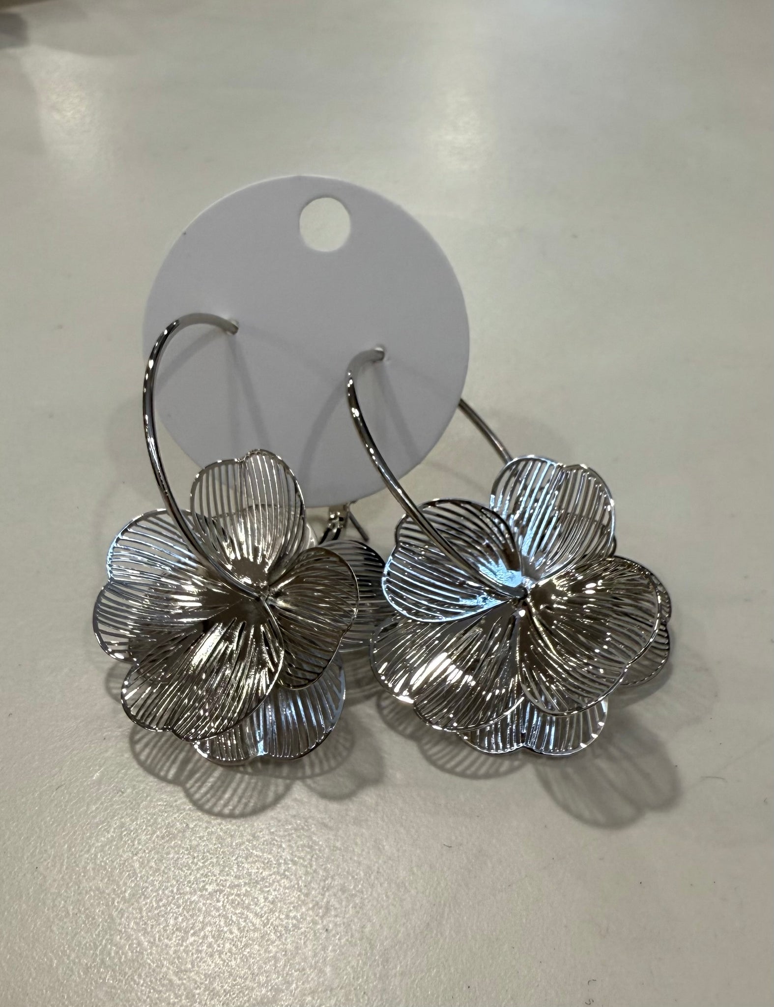 SILVER DOUBLE LAYER FLOWER HOOP EARRINGS